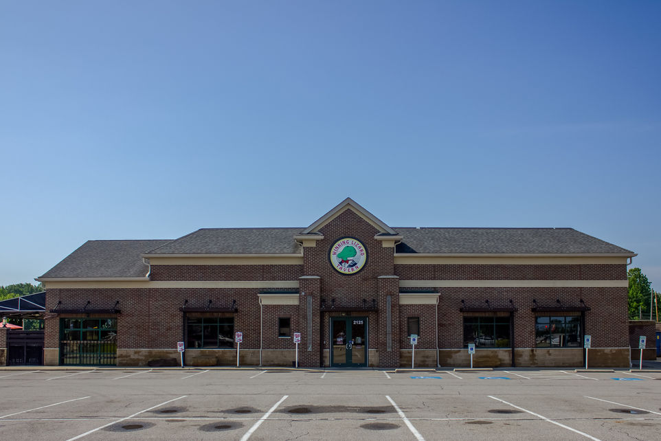 The Winking Lizard Tavern in Avon, Ohio, is a contemporary sports bar and restaurant that offers a dynamic dining experience. Situated at 2125 Center Rd, adjacent to the Avon Commons Shopping Center, it features a modern-organic design that emphasizes comfort and community. The building's exterior showcases a blend of brick and stone elements, creating a warm and inviting facade. Large windows allow natural light to flood the interior, enhancing the open and airy atmosphere.